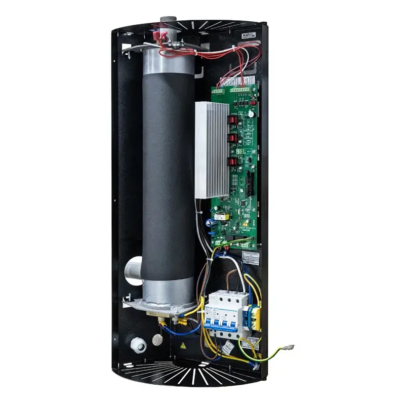 В котле применяется микропроцессорное управление нагревом и модуляцией мощности, которое снижает расход электроэнергии. Технология i-TRM обеспечивает плавный пуск во избежание просадки напряжения в сети. Попеременное включение нагревательных элементов при неполной нагрузке способствует равномерному расходу ресурса всех ТЭНов. Система самодиагностики котла Teplodom i-TRM SILVER StS-12 работает в автоматическом режиме, позволяя своевременно выявлять потенциальные неисправности. Благодаря симисторам ТЭНы переключаются совершенно бесшумно и предварительно прогреваются перед выходом на полную мощность.