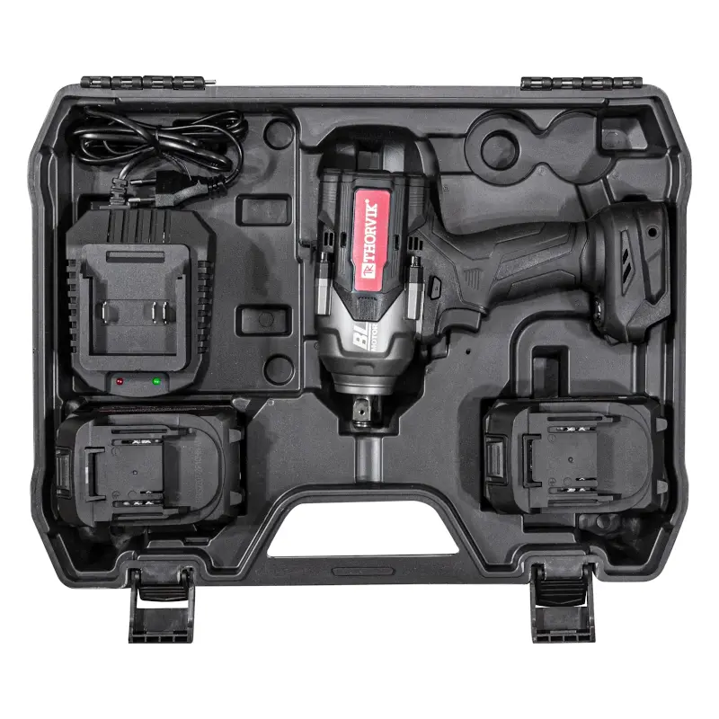 В аккумуляторном гайковерте установлен бесщеточный двигатель. Он пожаробезопасен и отличается тихой работой. Рукоятка сделана из ударопрочного материала. Бензо-маслостойкие нескользящие вставки обеспечивают уверенный хват. Заряд аккумулятора легко определяется при помощи светодиодной индикации. Все это обеспечивает комфортное и простое использование ударного гайковерта.