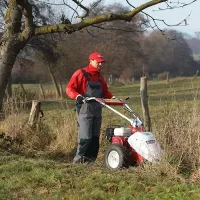 Профессиональная сенокосилка TIELBUERGER T50 Honda GX120 АА-255-040TS - мощный агрегат для скоса жесткой сухой травы и выполнения небольших объемов работ для заготовки сена.