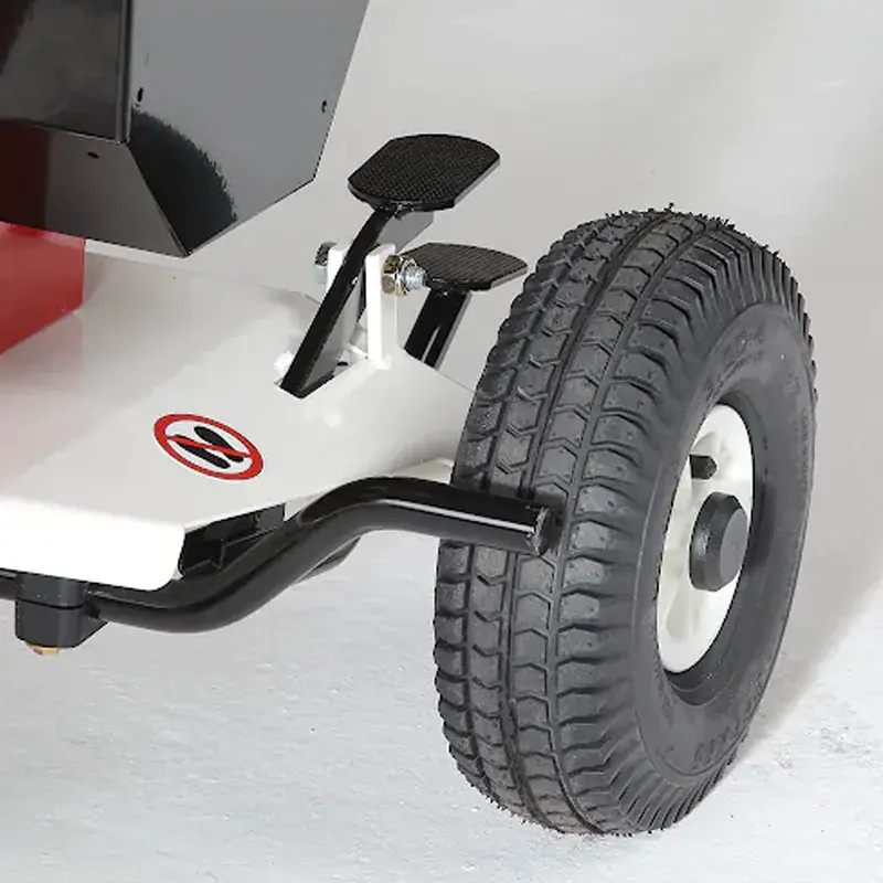 Имеет широкий загрузочный бункер и разгрузочный патрубок длиной 76 см, закрепленные на жесткой металлической платформе с колесами.