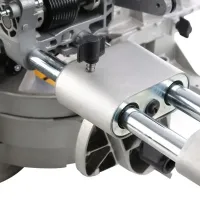 Торцовочная электропила оснащена пылеотводом. К нему присоединяется мешок для сбора мусора или строительный пылесос. Это позволит поддерживать чистоту в рабочем пространстве, чтобы не дышать пылью и отчетливо видеть линию реза.