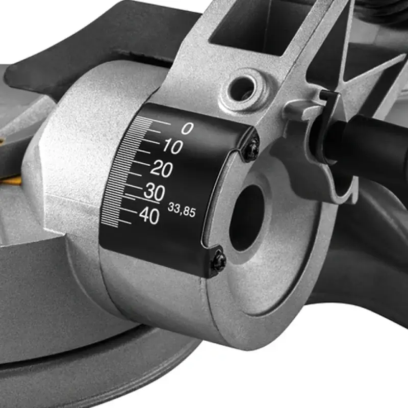 Сетевая торцовочная пила позволяет выполнять прямое и комбинированное резание. Стол можно повернуть в правую и левую стороны до 50°, воспользовавшись удобной шкалой. Для быстрой подготовки инструмента к работе предусмотрены фиксированные положения: 15°, 22,5°, 30° и 45°. Скользящий левосторонний упор с линейкой делает управление более удобным, а фиксацию заготовки надежной.