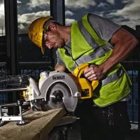 В конструкции торцевой пилы DeWALT DWS778 предусмотрена система пылеудаления. Древесная пыль отводится через специальный патрубок. Вы можете подключать к нему вытяжку или строительный пылесос со скоростью воздушного потока 18-22 м/с.