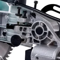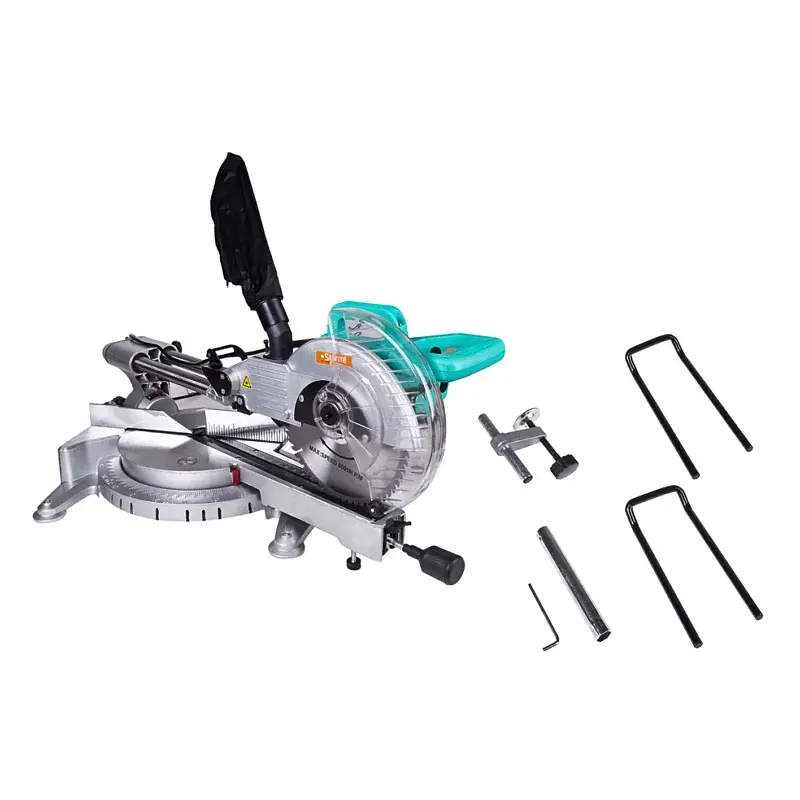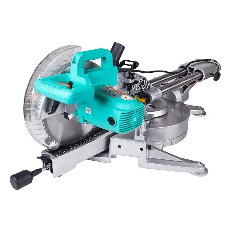 • Инструмент оснащен увеличенным пильным диском, встроенным протяжным механизмом, винтовым зажимом для прочной фиксации заготовок и предотвращающие их опрокидывание выдвижными боковыми суппортами. Благодаря большому поворотному столу, фиксирующемуся в любом положении, наличию удобной регулировки с прецизионными шкалами для точной настройки нужного наклона пилу можно уверенно выставить в рабочую позицию на предварительно заданные параметры косых пропилов.