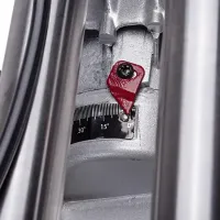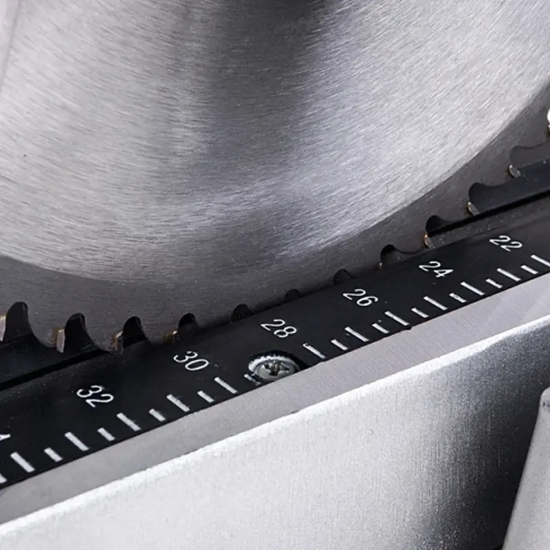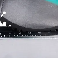 • Безопасный сдвигающийся кожух и бесступенчатая регулировка глубины пропила с удобной шкалой и фиксацией без ключа облегчает работу с заготовками.