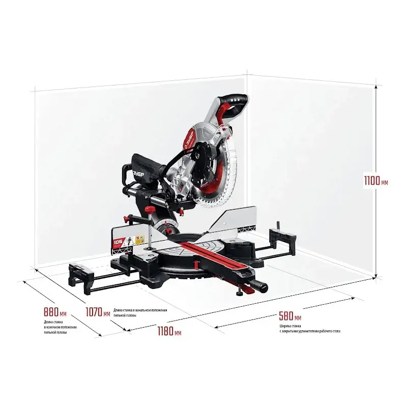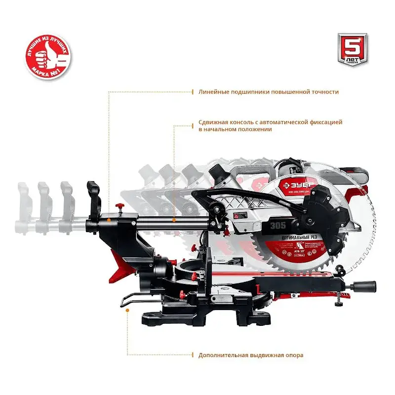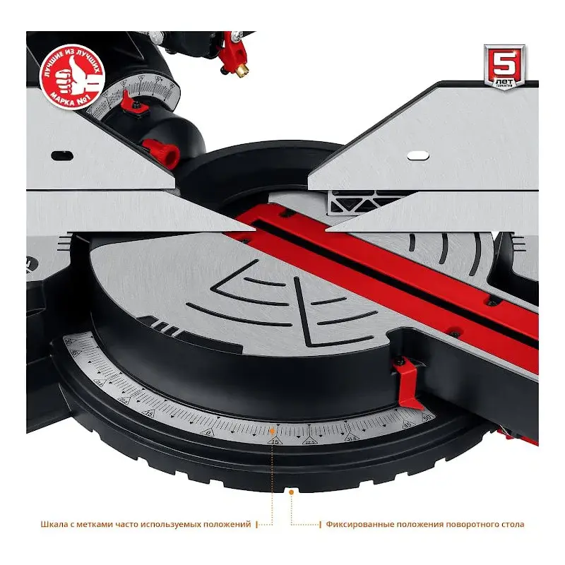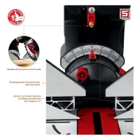 Двойной скользящий механизм обеспечивает аккуратный и точный ход вдоль линии реза. Перемещение и возврат диска в исходное положение происходит без дополнительных усилий.