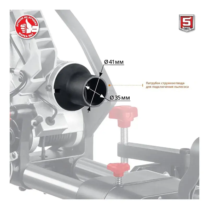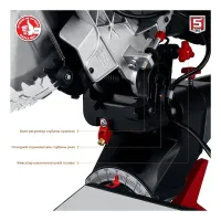 Пила оснащена системой отвода и сбора мусора. На кожухе диска расположен патрубок, к которому можно подключить текстильный пылесборник из комплекта поставки или пылесос, продающийся отдельно. Это гарантирует чистоту на рабочем месте.