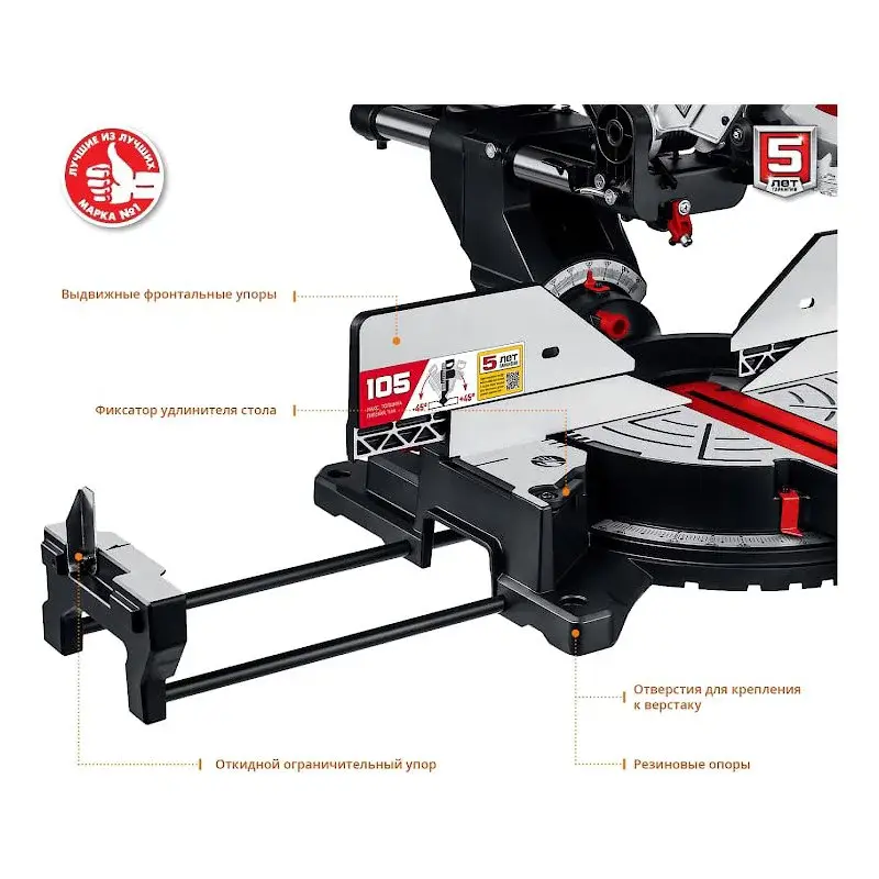 Для обработки габаритных заготовок по бокам корпуса расположены выдвижные направляющие. В них предусмотрены упоры для надежной фиксации.