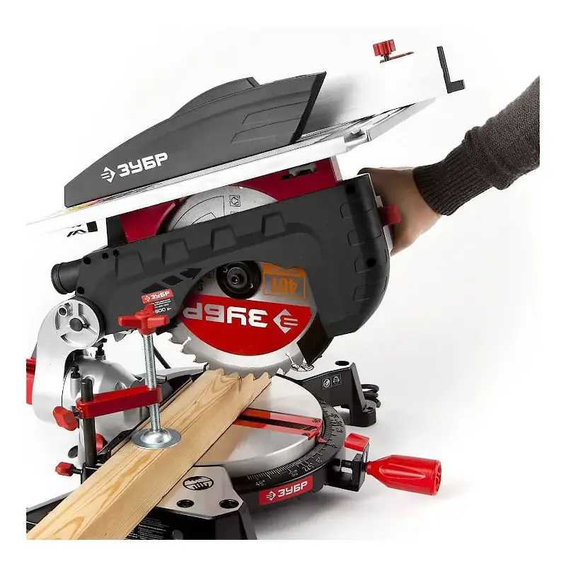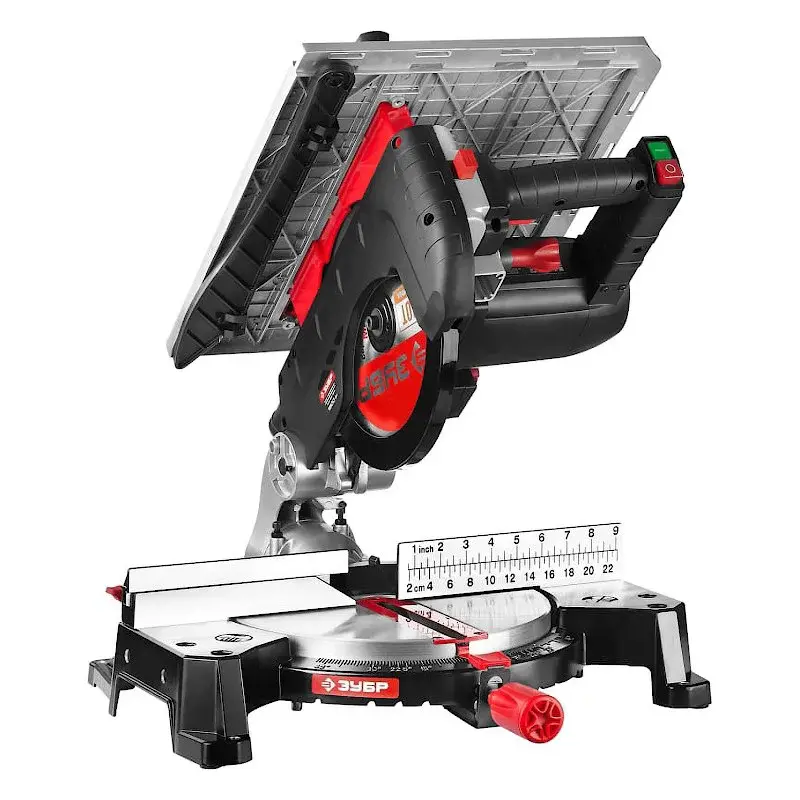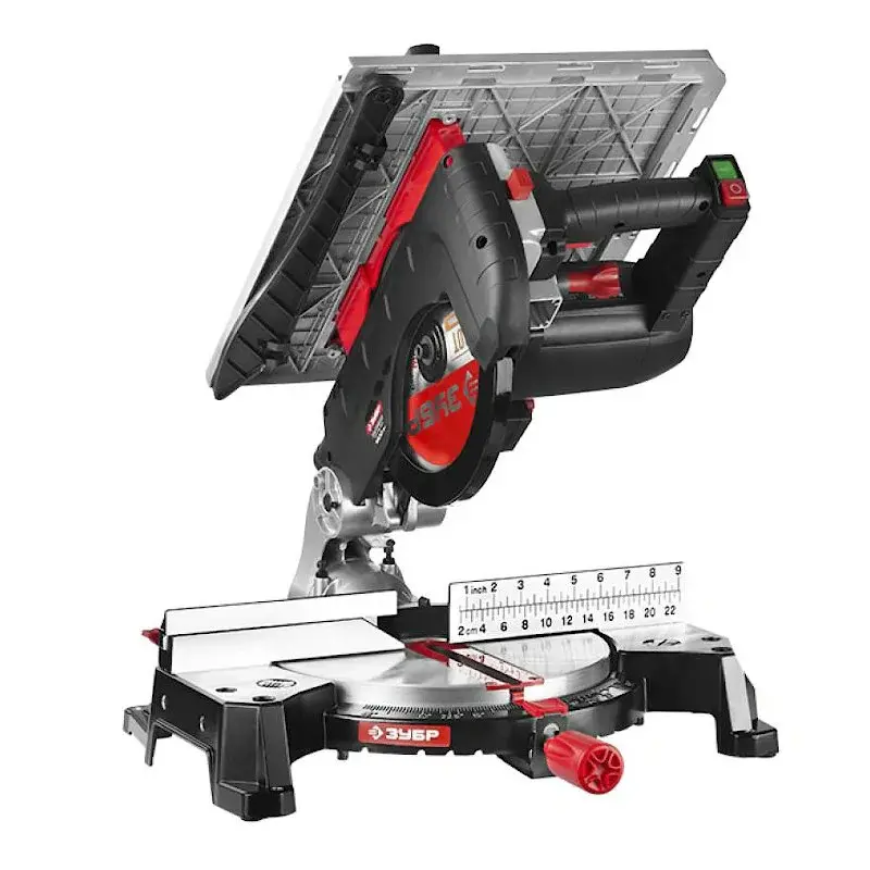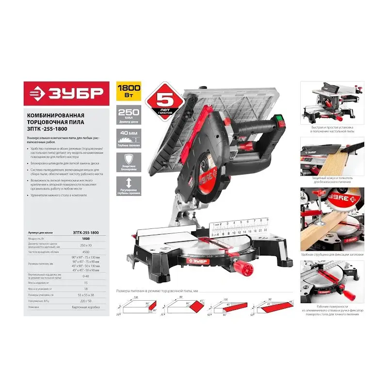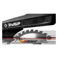 Диск диаметром 250 мм гарантирует работу ЗУБР ЗПТК-255-1800 с материалами разной толщины. Инструмент подходит для косого, прямого пиления, а также под наклоном.