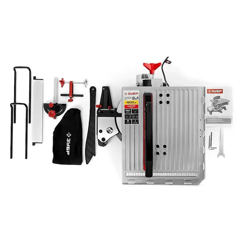 Торцовочная пила ЗУБР ЗПТК-255-1800 мощностью 1800 Вт подходит для комбинированного распила алюминия и дерева. Диаметр диска составляет 250 мм. Оборудование поставляется в комплекте с мешком для пыли.