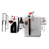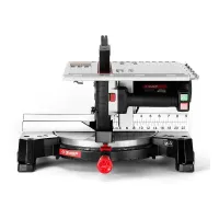 Комбинированная система позволяет быстро переключаться между типами работ. Для обработки небольших заготовок присутствует опорный поворотный стол. Для распиливания крупногабаритных досок применяется рабочая поверхность в верхней части корпуса. Обе конструкции оснащены необходимыми функциями и механизмами для выполнения конкретных работ - регулировка высоты пиления, наклона и т.д.