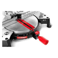 Регулировка пилы вы можете распиливать под наклоном 45° влево и вправо. Рабочий стол также настраивается на 45°. Это позволяет проводить косой рез. Максимальная глубина пропила составляет 50 мм под углом 45° и 75 мм при вертикальном положении диска, ширина достигает 90 мм. При необходимости длину рабочего стола можно увеличить с помощью выдвижных направляющих.