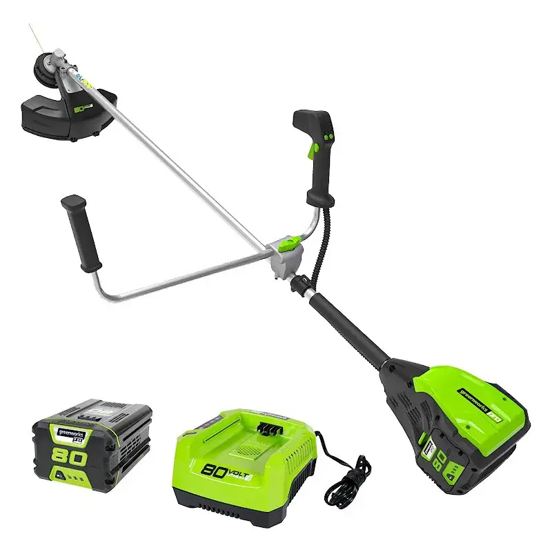 Аккумуляторный триммер GreenWorks из линейки устройств 80 вольт (модель GD80BCB) - относится к серии Professional, которая легко заменит электрические или бензиновые триммеры. Этот триммер с легкостью справиться с высокой и густой травой, а благодаря пильному диску (в комплекте) можно резать крупный кустарник и сухостой. Это профессиональная триммер, который отлично подойдет для ведения дачного хозяйства.