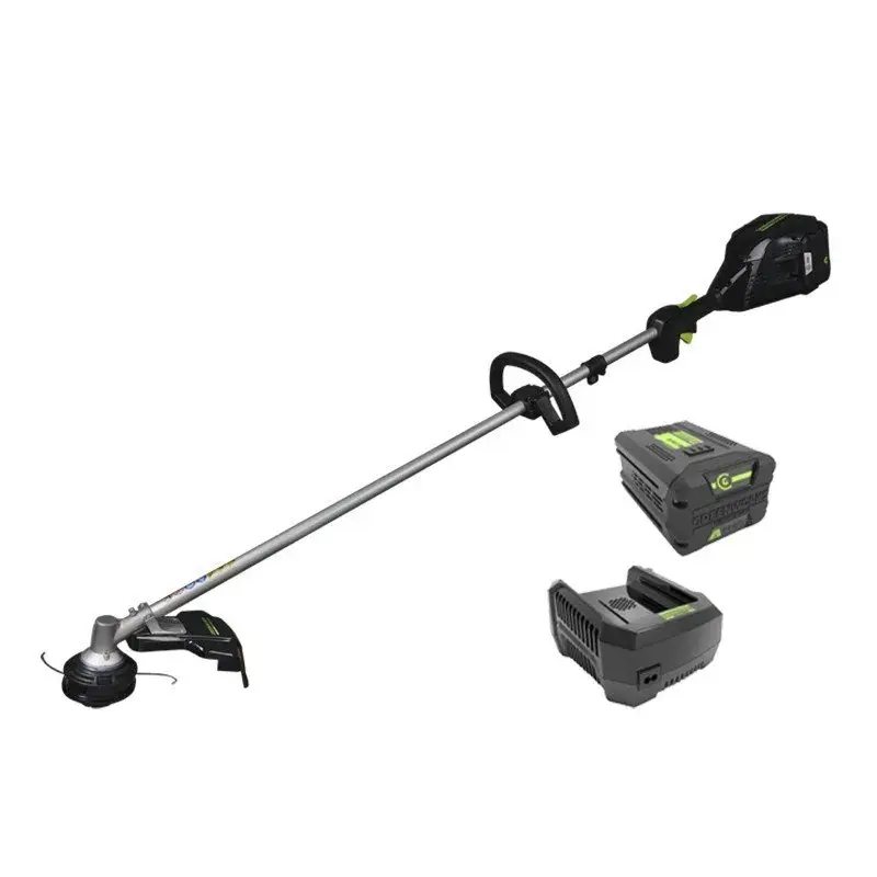 Долгое автономное время работы до 80 минут от 5 Ач батареи достигается за счет увеличенной ёмкости аккумулятора. Предусмотрен предохранитель от случайного включения и защитный кожух режущей части для соблюдения безопасности при проведении работ. Сам двигатель имеет защиту от перегрузки, вал между двигателем и режущей частью - прямой и выполнен из стали. Триммер работает от аккумуляторной батареи 82V Commercial, которую можно использовать со всеми устройствами GreenWorks из линейки техники 82 вольт. На профессиональную аккумуляторную технику Greenworks действует стандартная гарантия 1 год.