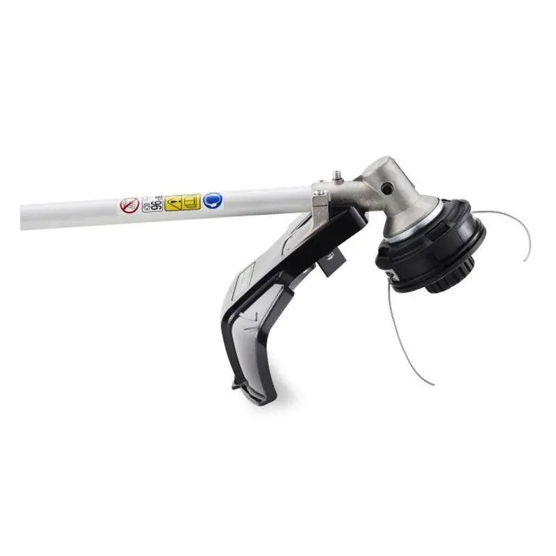 Включение триммера производится одной кнопкой. Предусмотрен наплечный ремень, а также эргономичный дизайн рукоятки. Долгое автономное время работы до 80 минут от 5 Ач батареи достигается за счет увеличенной ёмкости аккумулятора. Предусмотрен предохранитель от случайного включения и защитный кожух режущей части для соблюдения безопасности при проведении работ. Сам двигатель имеет защиту от перегрузки, вал между двигателем и режущей частью - прямой и выполнен из стали.