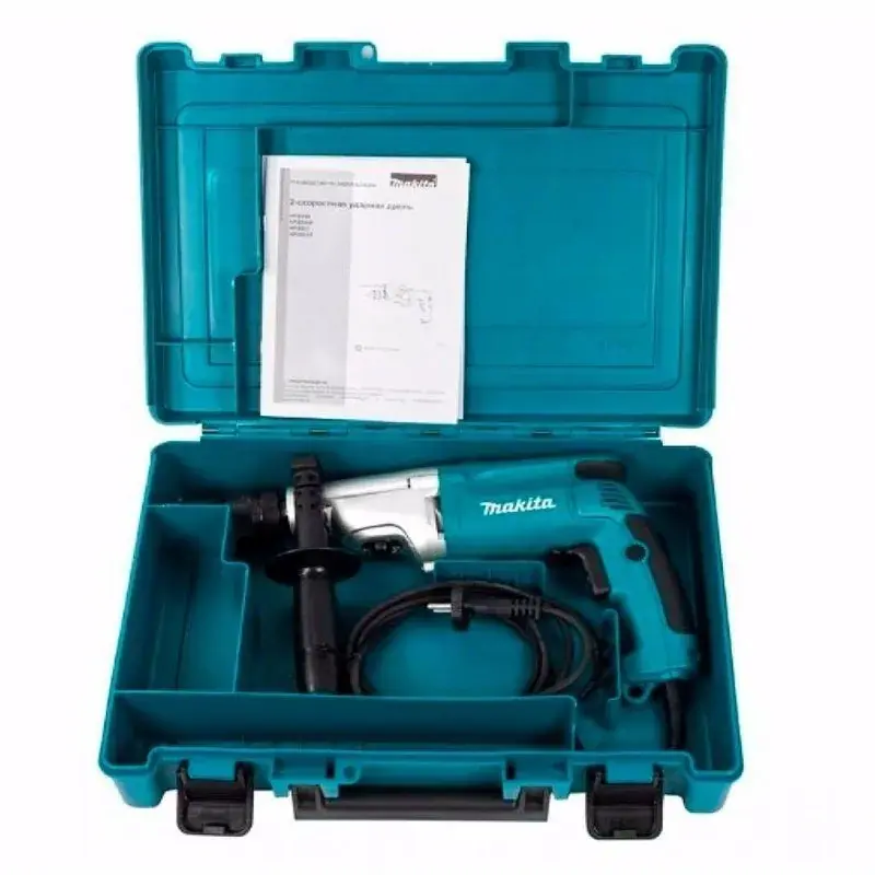 Ударная дрель Makita HP2051F оснащена 2 режимами работы - обычное и ударное сверление. Поставляется упакованной в кейс, в комплекте с боковой рукояткой, ограничителем глубины и быстрозажимным патроном.