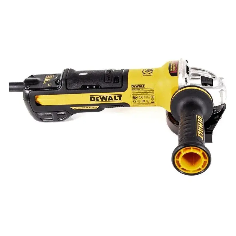 Универсальная болгарка (УШМ) DeWalt DWE 4369 работает от сети, но при этом имеет бесщеточный двигатель. Это инновационная модель, которую отсутствие щеток сделало более эффективной, долговечной, компактной и безопасной. Одна из особенностей модели – короткий выбег, т.е. вращение двигателя по инерции почти отсутствует. Электронный блок обеспечивает защиту от повторного запуска, перегрузки и обратного удара, Болгарка оснащена муфтой E-Clutch, бесключевыми поворотным кожухом и зажимной гайкой, регулятором скорости вращения. Нескользящая рукоятка устанавливается и справа, и слева. Внутренние элементы надежно защищены от попадания пыли. Световой индикатор сообщает о состоянии инструмента.