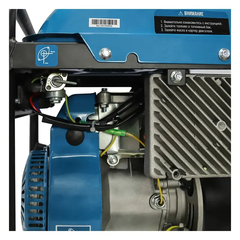 Двигатель имеет защиту от работы при отсутствии или недостаточном количестве моторного масла. Автоматический выключатель срабатывает при перегрузке или коротком замыкании и отключает бензогенератор и подключенные устройства во избежание поломки.