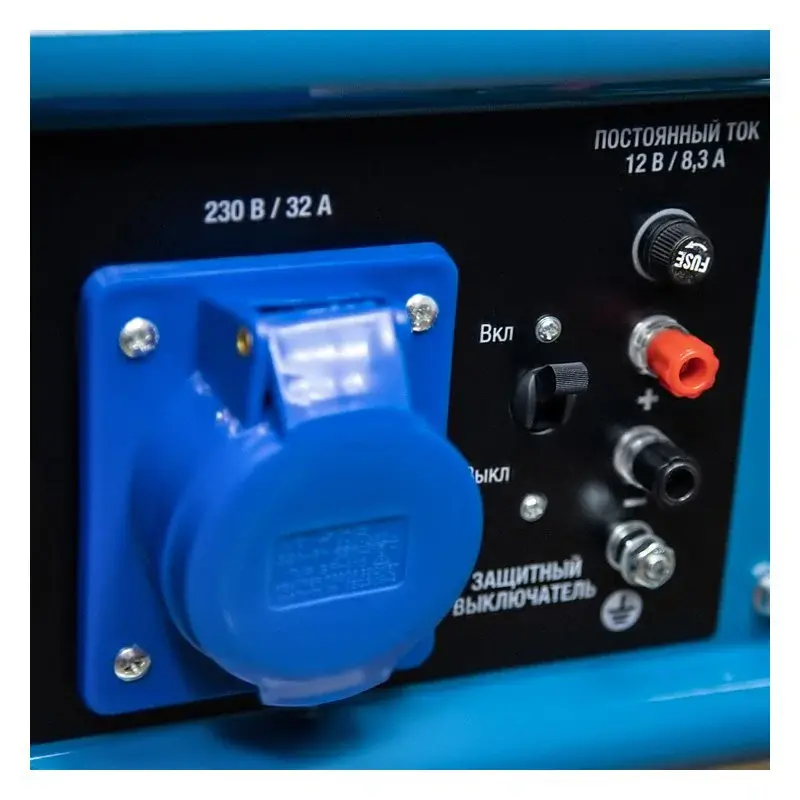 Для питания нескольких однофазных потребителей одновременно на панели управления генератора расположены три выхода: две розетки 16 А, а также одна силовая 32 А.