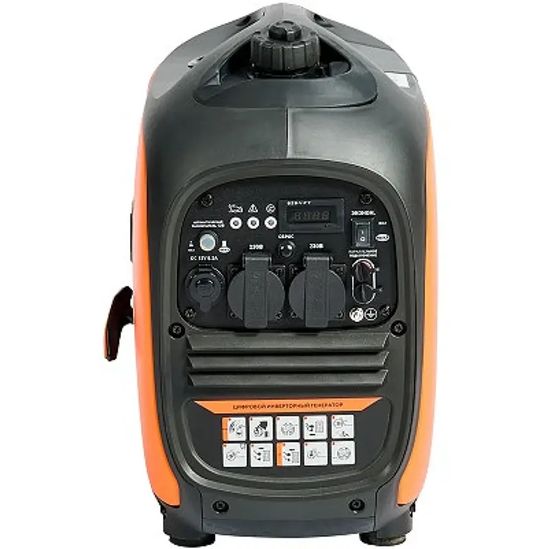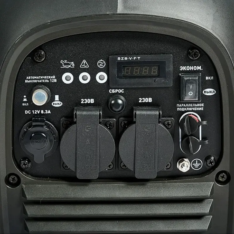 GI 258S оснащен дисплеем "3 в 1", отображающим напряжение, частоту тока и отработанные моточасы, а также тремя светодиодными индикаторами разных цветов для удобства мониторинга работы генератора.