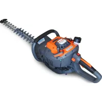 Особенности данного инструмента включают большую режущую гарнитуру размером 560 мм, что позволяет формировать ровные плоскости кустарников, особенно в случае объёмных кустарников.