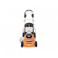 В комплекте с газонокосилкой есть насадка для работы в режиме мульчирования. Скошенная трава измельчается режущим ножом и остается на газоне. Это способствует обогащению почвы питательными веществами. Пластиковые детали устойчивы к ультрафиолетовому излучению, сохраняют пластичность на протяжении всего срока службы, не выцветают и приятны на ощупь. Они также не содержат токсичных веществ. Колеса большого диаметра на подшипниках обеспечивают плавность, легкость и надежность хода. Надежный и легкий складной травосборник объемом 55 литров удобен для опустошения и легко устанавливается или снимается. Для удобства хранения рукоятку можно сложить, что помогает уменьшить габаритные размеры газонокосилки.