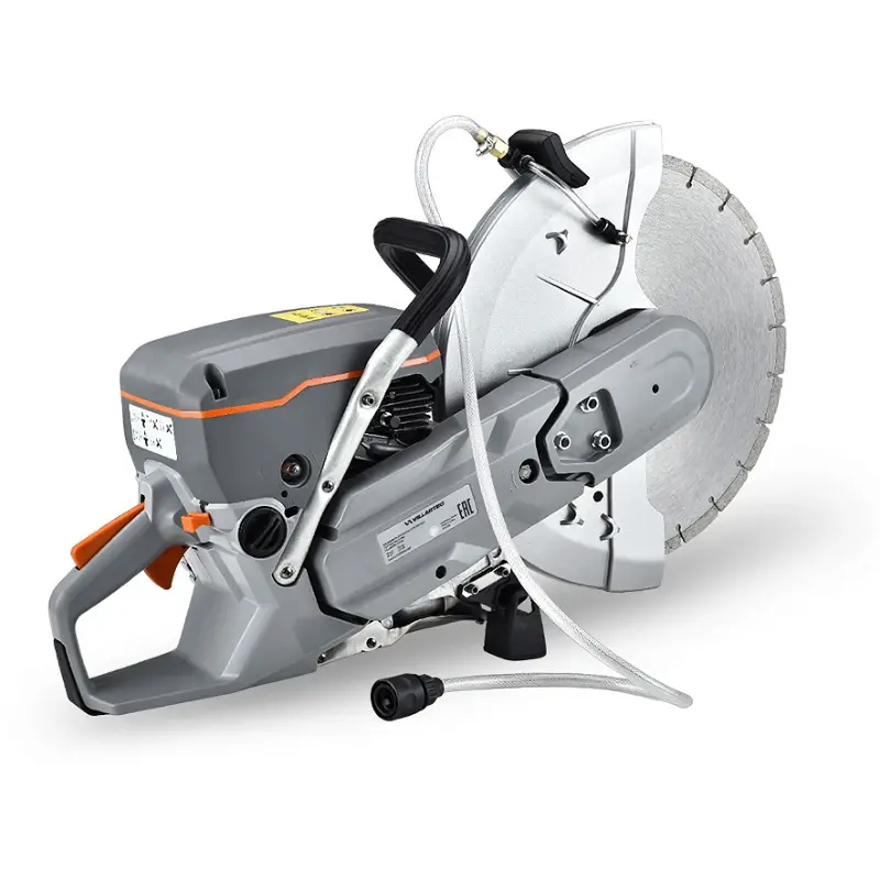 Система подключения воды, при помощи быстросъемного соединения, расширяет функциональные возможности бензореза, позволяя производить не только сухую, но и влажную резку материалов.