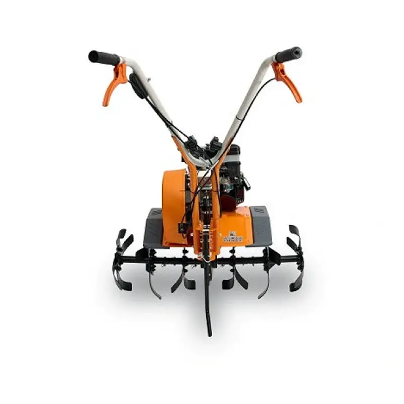 Максимальная ширина обработки составляет 850 мм, и при необходимости можно снимать часть фрез для удобства работы в ограниченном пространстве, что увеличивает маневренность. Фрезы изготавливаются из высококачественной стали с особой геометрией, обеспечивающей правильное погружение в почву с минимальным сопротивлением, а ширина фрез увеличена для максимальной надёжности.