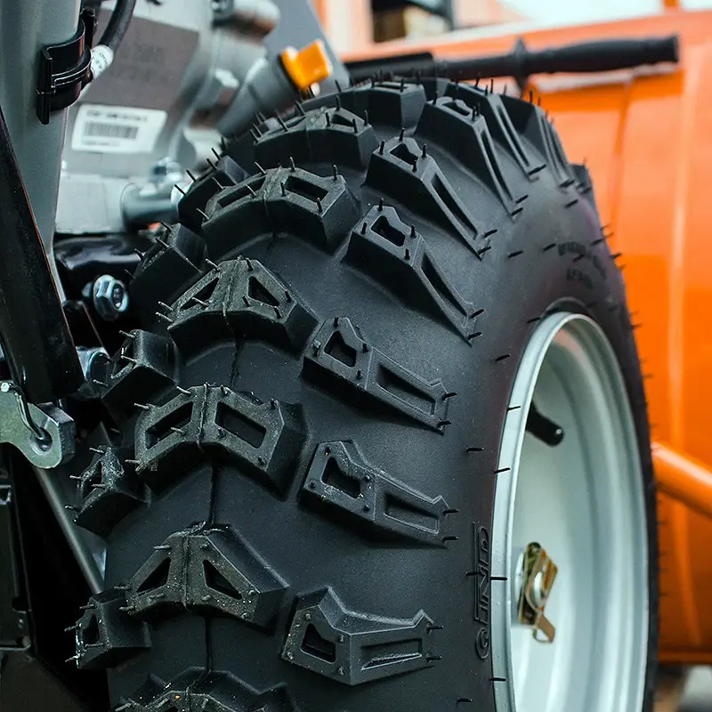 Агрессивный стальной шнек справится с любым снегом и наледью, а срезные болты защитят редуктор от повреждения. Ковш изготовлен из высокопрочной стали толщиной 2 мм усиленный ребрами жесткости выдерживает огромную нагрузку. Большой диаметр импеллера существенно увеличивает производительность снегоуборщика.