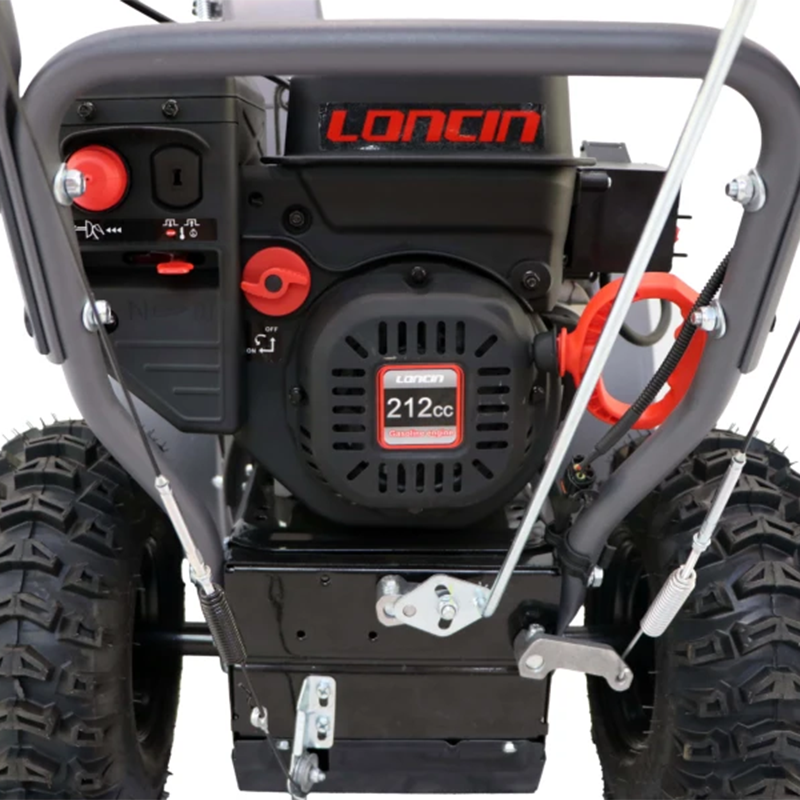 Подогрев рукояток позволяет комфортно работать даже в сильные морозы, а светодиодный фонарь пригодится при уборки участка в темное время суток, например, ранним утром или поздним вечером.