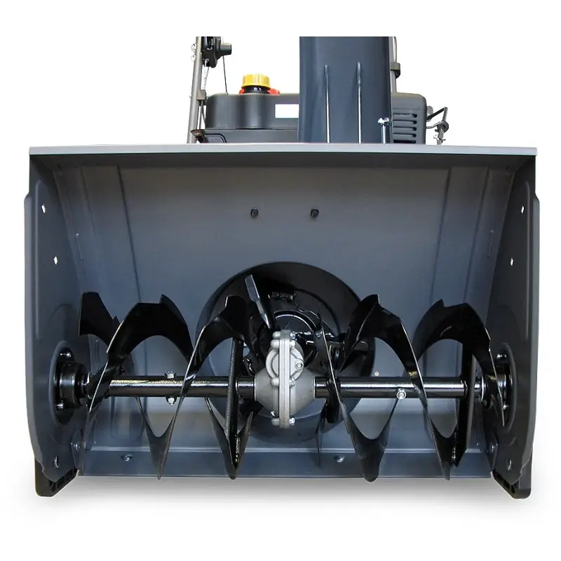 В бензиновом снегоуборщике установлен прочный металлический шнек. Он позволяет работать со снегом любой плотности. Расстояние между ковшом и землей задается вручную при помощи направляющих лыж. Это позволяет учесть особенности участка и выбрать оптимальный для безопасности и тщательной уборки зазор.