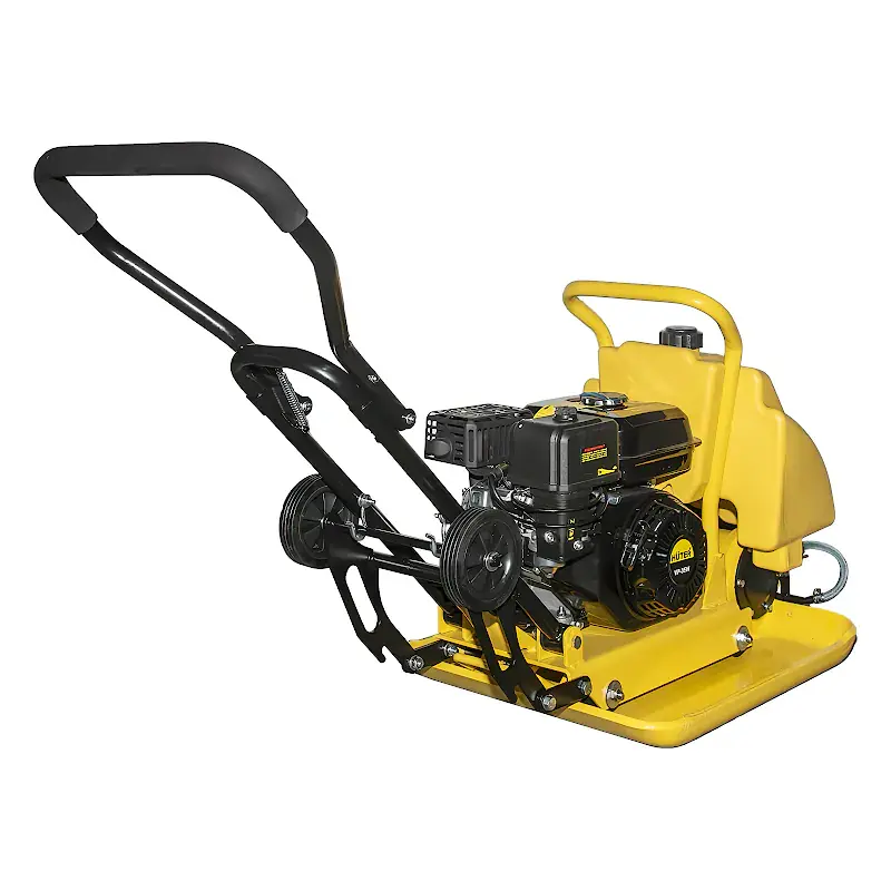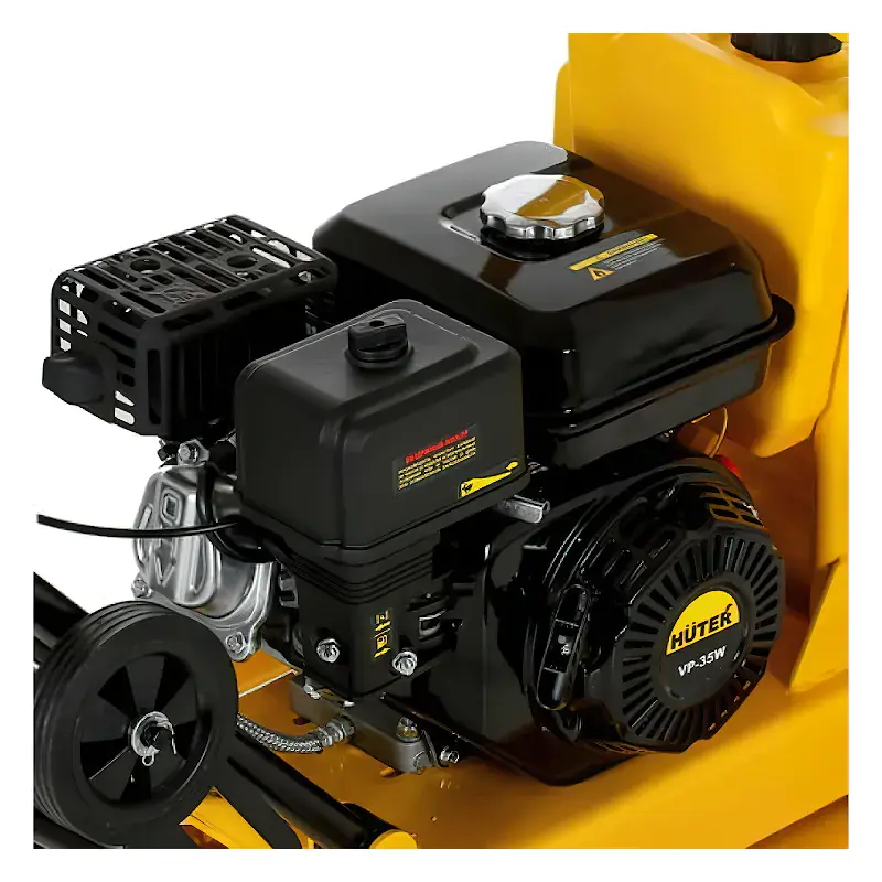Виброплита Huter VP-35W мощностью 6,5 л.с. подходит для обработки песка, гравия, брусчатки на глубину до 35 см. Центробежная сила составляет 25 кН, что обеспечивает быстрое и качественное уплотнение.