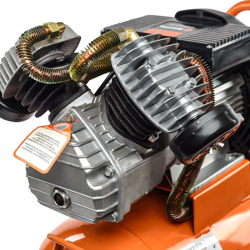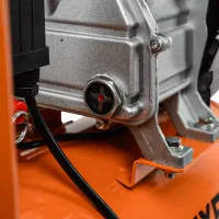 Одноцилиндровый поршневой масляный компрессор оснащен электродвигателем мощностью 2,5 кВт. Надежный и малошумный в работе коаксиальный привод обеспечивает почти 100% передачу крутящего момента. Защитный чехол предотвращает повреждение двигателя и привода. Смазка повышает устойчивость элементов поршневого механизма к износу.