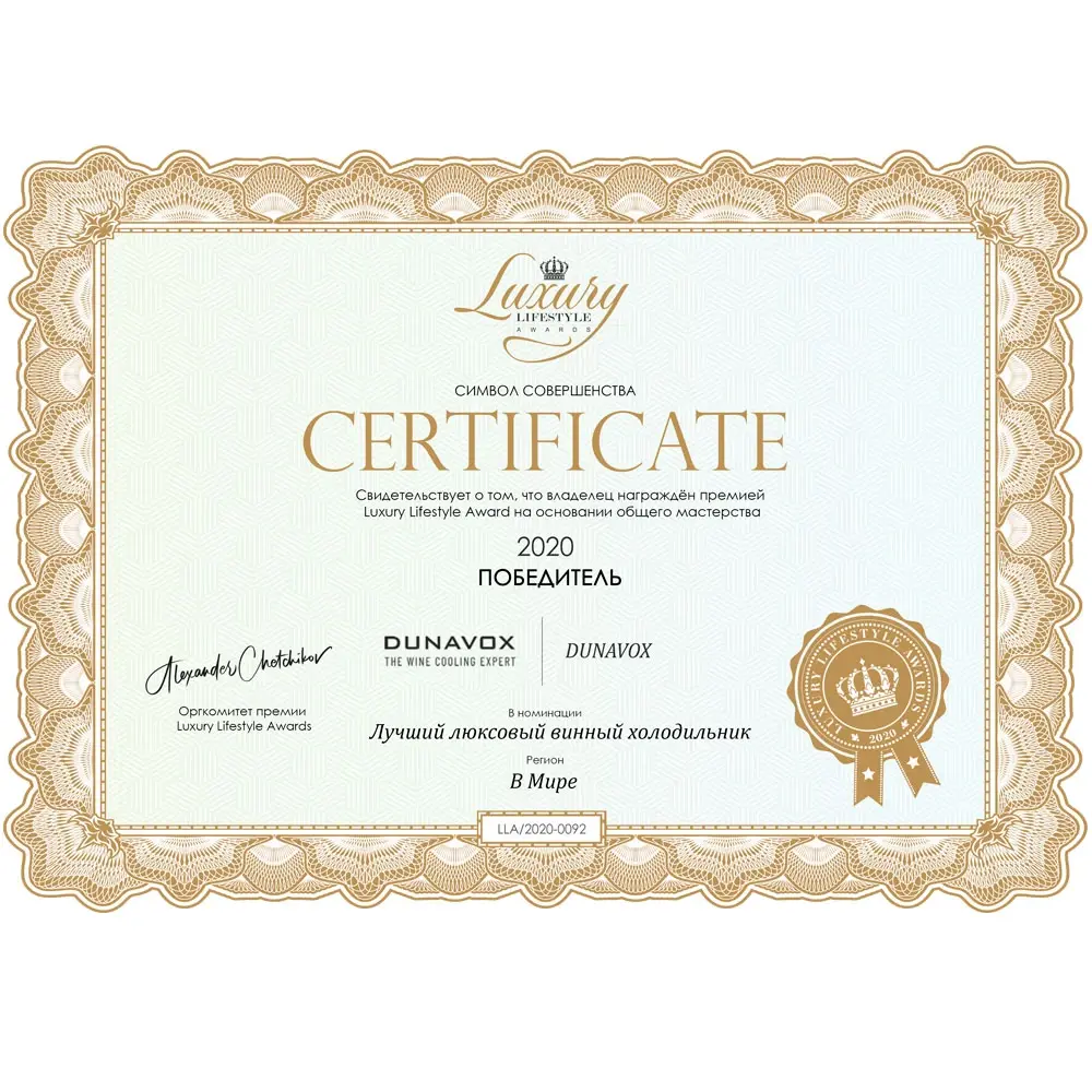 После установки у данного винного шкафа сохраняется функция Touch Open. Дверца открывается во время прикосновения Вашей руки к стеклу. При необходимости можно установить ручку из нержавеющей стали и настроить чувствительность сенсора. В качестве дополнительной функции, производители Dunavox разработали реверсивную дверь. Это поможет разместить шкаф в удобном для Вас месте или расположить две модели рядом, создав технологию открытия side-by-side. Тройное стекло с защитой от прямых УФ-лучей поддерживает качественные условия хранения вина. Встроенная система вентиляции создаёт необходимую циркуляцию воздуха для правильной работы винного холодильника