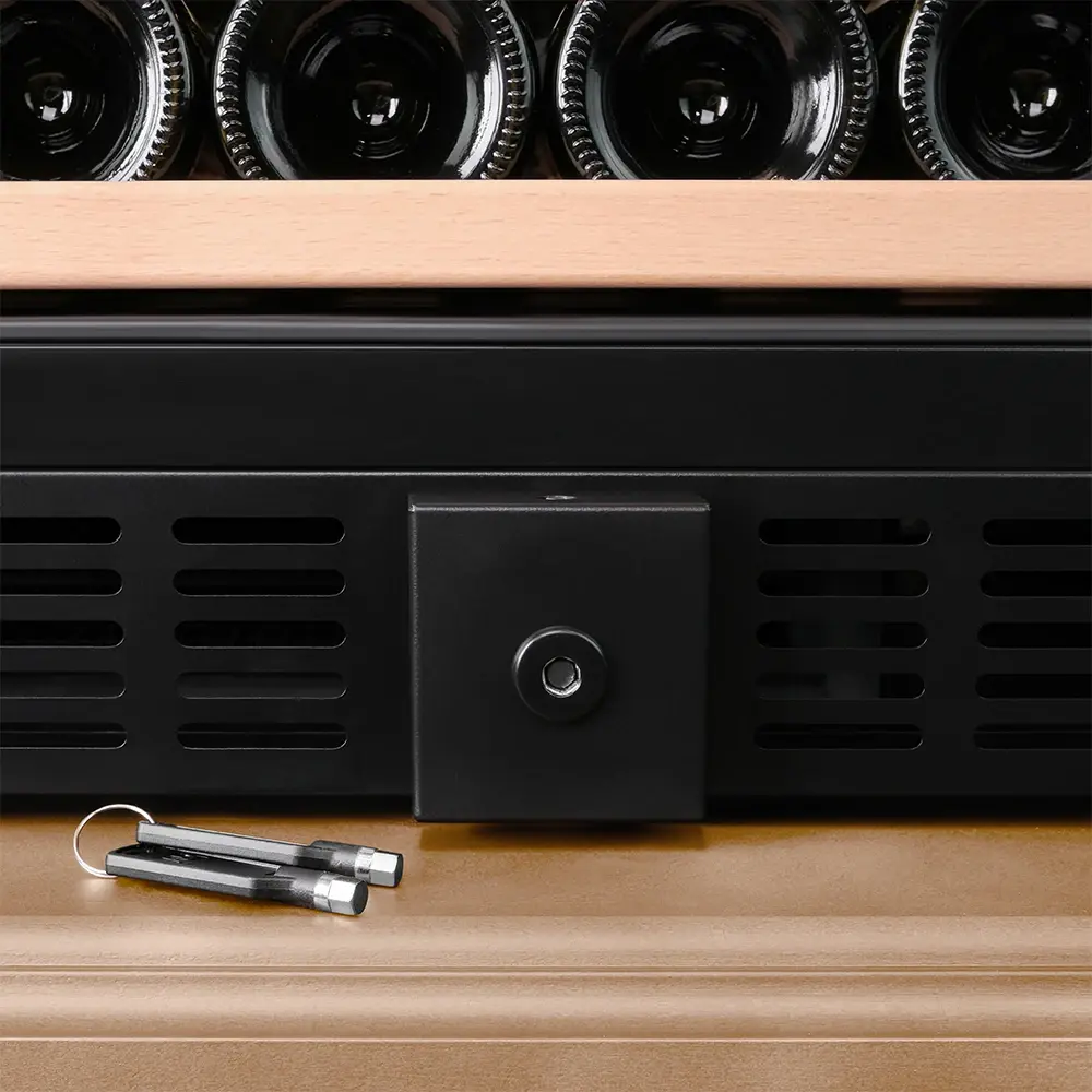 Винный шкаф двухзонный Meyvel MV77PRO-KBT2 (Натуральный бук) имеет привлекательный внешний вид, сочетающий в себе неподвластное времени очарование натурального дерева с высокотехнологичными системами.