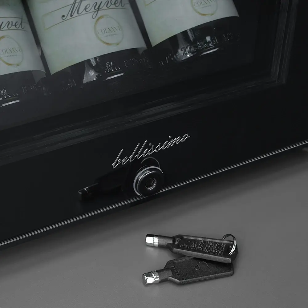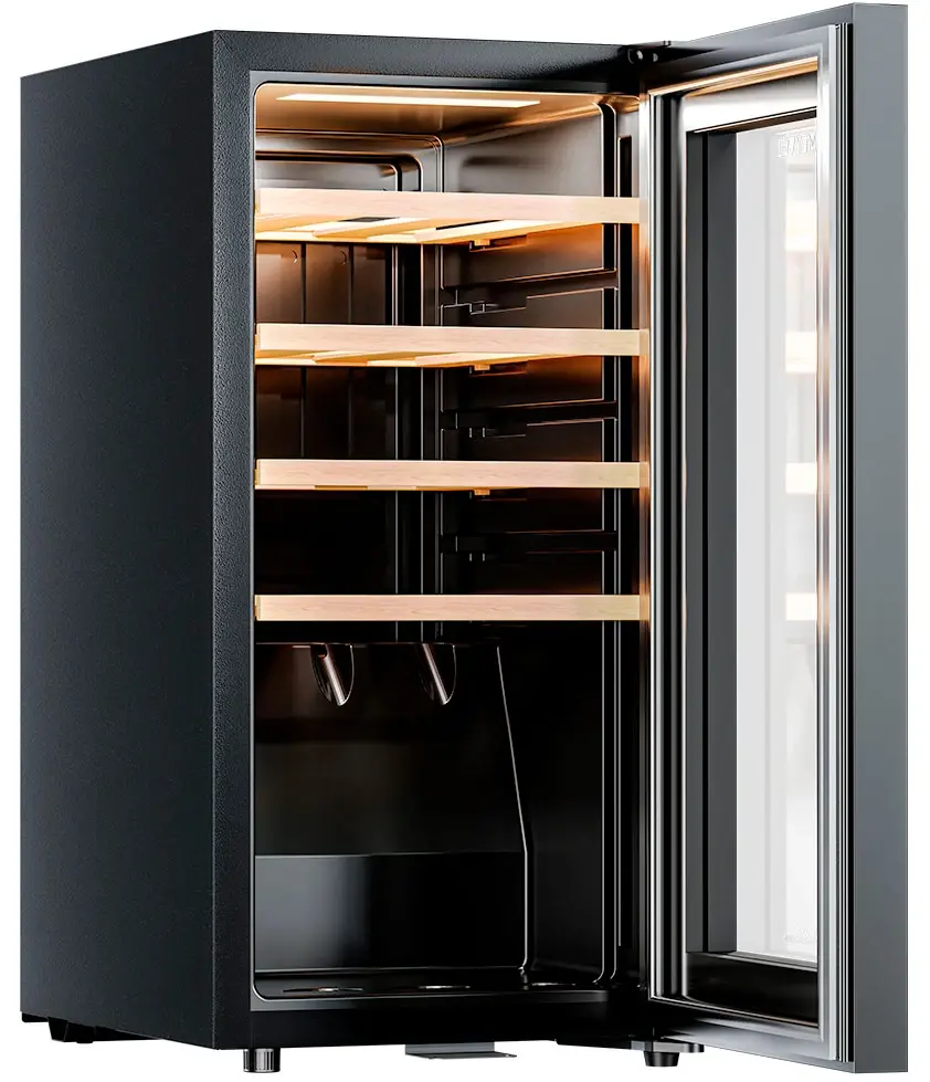 С эффективным типом прямого охлаждения и поддержкой температуры в диапазоне от +5 до +20°C, это устройство содержит вина в оптимальном состоянии. А с влажностью, контролируемой в пределах 60-80%, напитки долго не потеряют свои вкус и аромат. Двойное стекло с УФ-фильтром обеспечивает надежную защиту от пагубных солнечных лучей.