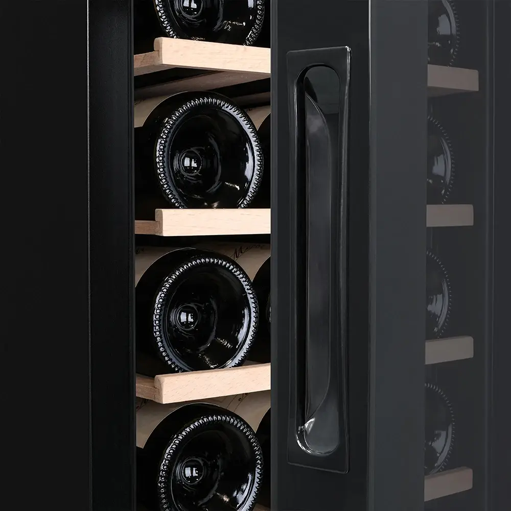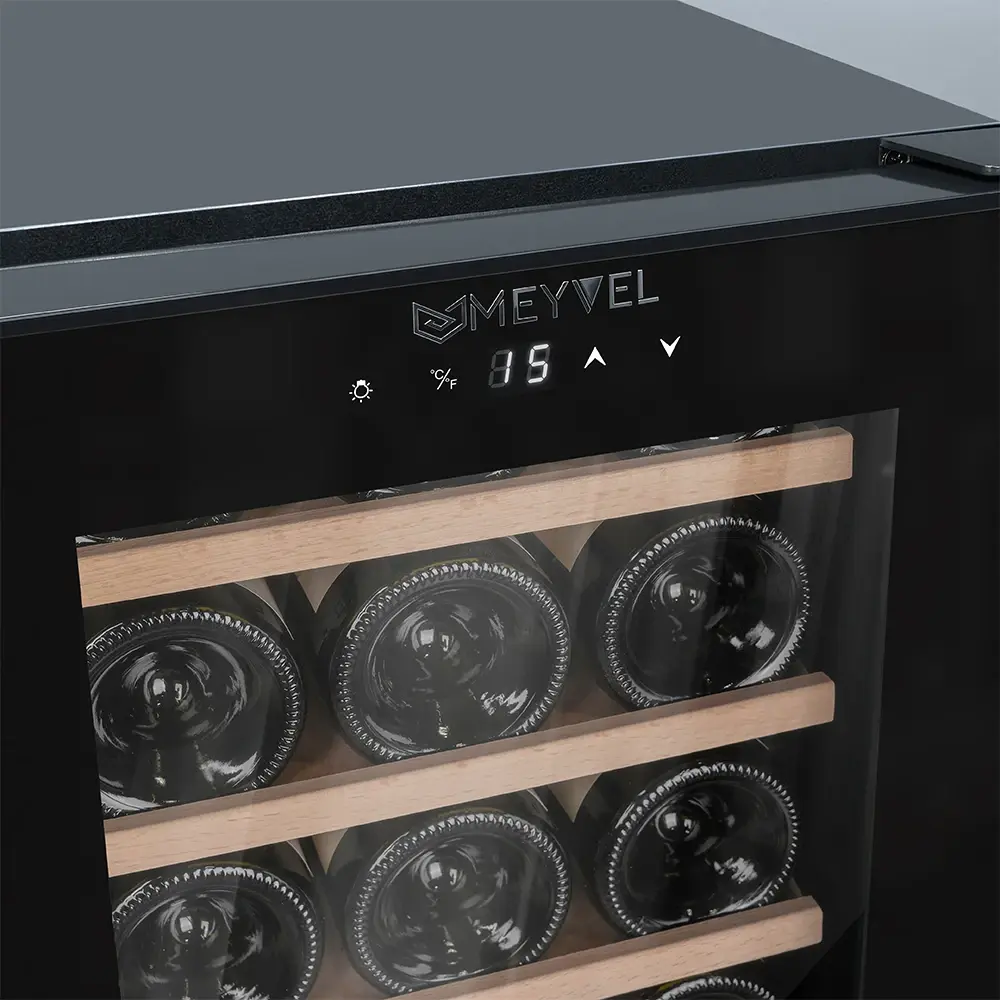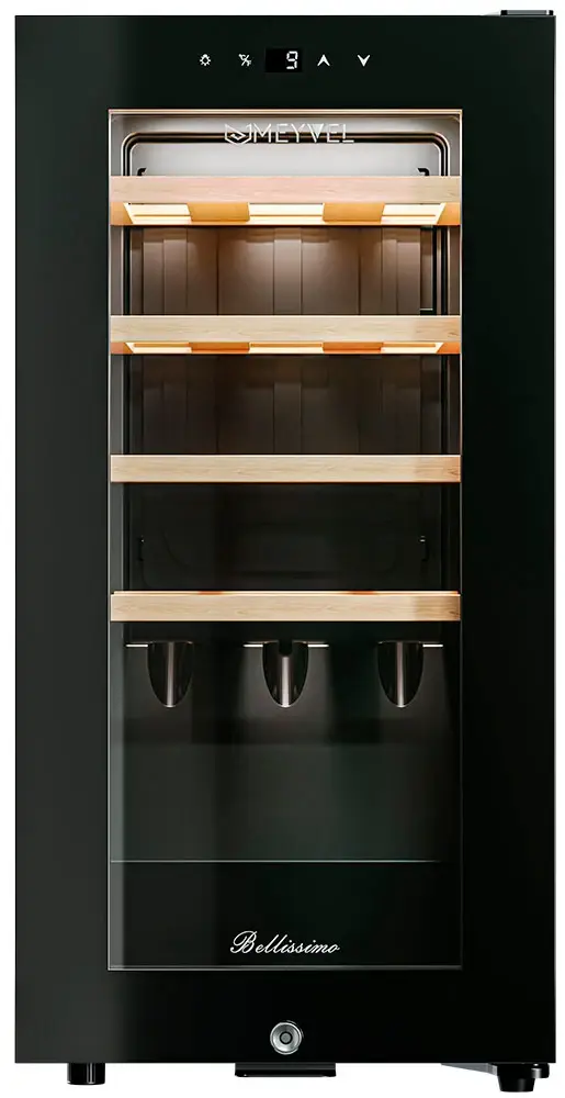 Винный шкаф монотемпературный Meyvel MV15-KBF1 отличный выбор для ценителей вина, которые хотят организовать элегантную и практичную винотеку. Это сильное и вместе с тем функциональное устройство способно вместить до 15 бутылок типа «Бордо» 0,75 литра, обеспечивая их идеальное хранение.