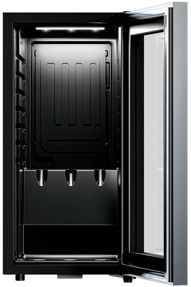 Сенсорное управление позволяет легко установить и поддерживать нужную температуру и влажность. LED-подсветка придает шкафу презентабельный вид и облегчает доступ к его содержимому.