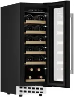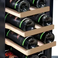 Компрессорный винный шкаф обладает оптимальной вместимостью и даёт возможность разместить до 19 бутылок стандартного типа Бордо (0,75 л). Располагаются они на выдвижных полках из дерева. Внутреннее пространство шкафа поддерживает комфортную для вина температуру от +5°C до +20°C. Так же, эта модель поддерживает влажность в диапазоне 60-80%, как в настоящем винном погребе.