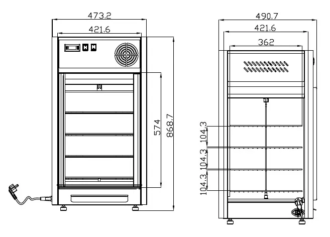В витрине предусмотрены четыре вращающиеся круглые хромированные полки, на которых можно хранить пиццу, торты, пирожные, десерты и т.д.