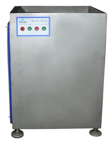 Волчек JR-120 может измельчать замороженное мясо с температурой до -7С, предварительно разрезанное на пиле или блокорезке до необходимых размеров (не более 50мм). JR-120 надежен, прост в обслуживании и эксплуатации. На данной модели установлены самозатачивающиеся ножи, что значительно упрощает обслуживание и увеличивает срок службы ножевого комплекта.