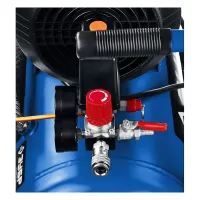 Реле давления автоматически регулирует работу компрессора, останавливая двигатель при заполнении ресивера объемом 50 л и вновь запуская его по мере расходования сжатого воздуха. Давление можно настраивать для каждого из выходов по отдельности, подсоединив одновременно два разных инструмента.