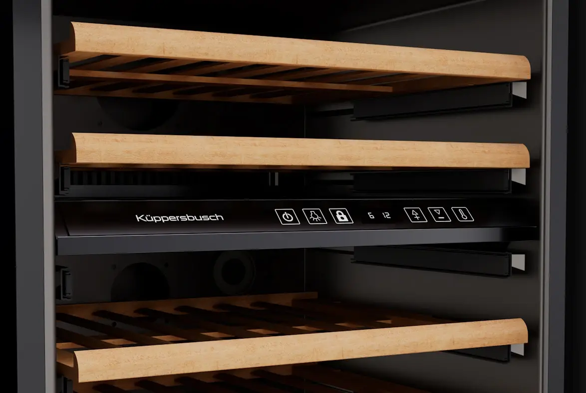 Встраиваемый винный шкаф Kuppersbusch FWKU 1851.0 S оснащен двумя температурными зонами и позволяет соблюдать подходящую температуру для хранения разных видов вин. Не секрет, что настоящий вкус вина раскрывается только при соблюдении подходящего температурного режима.