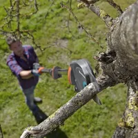 Легкая и тонкая режущая головка способствует эффективному обрезанию веток даже вблизи ствола. При этом шлифовальные диски минимизируют сопротивление во время работы.