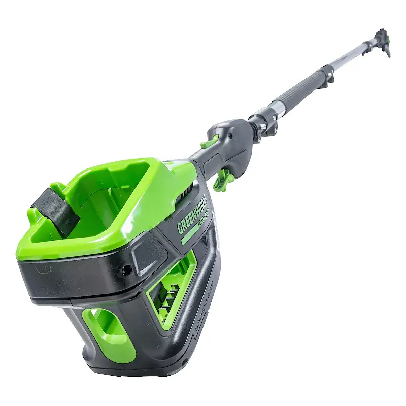 Бесщеточный двигатель имеет низкое энергопотребление, продолжительный срок службы, пониженный уровень шума и вибрации. Надежность эксплуатации обеспечена за счет отсутствия искрообразования, износа и трения контактирующих деталей. Сучкорез Greenworks GD82PS25 82V работает от приобретаемого отдельно универсального аккумулятора системы 82V, который подходит к другим аккумуляторным инструментам производителя. Все аккумуляторные батареи имеют систему электронной защиты, которая срабатывает в случае перегрузки, перегрева или глубокой разрядки, выключая двигатель.