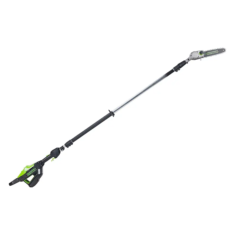 Аккумуляторный высоторез-сучкорез Greenworks GD82PS25 82V профессионального класса предназначен для обрезки ветвей на высоте до 6 м. Четырехсекционная штанга раздвигается на максимальную длину 390 см, что позволяет легко достать и отпилить сучки, находящиеся высоко над землей. Инструмент, оснащенный 25-сантиметровой пильной шиной со скоростью движения цепи 11,8 м/с, обеспечивает высокую производительность. Заряда аккумуляторной батареи емкостью 5 Ач хватает на выполнение до 110 срезов.