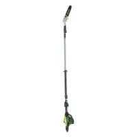 Аккумуляторный высоторез включается нажатием одной кнопки. В целях безопасности выключатель оснащен предохранителем, предотвращающим случайный запуск устройства. Длина штанги легко регулируется под нужную высоту, на которой планируется выполнять работы по обрезке. Инструмент не выскальзывает из рук благодаря прорезиненным рукояткам. Сучкорез оснащен системой автоматической смазки цепи, обеспечивающей плавный ход пильной шины. Уровень оставшегося масла удобно отслеживать через прозрачное окошко масляного бачка.