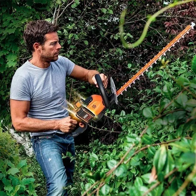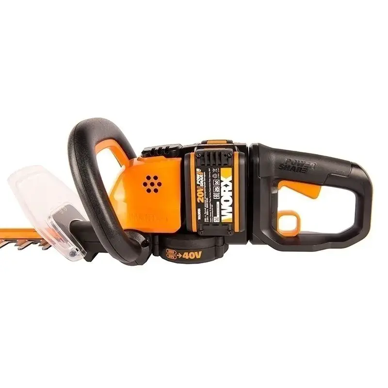 Аккумуляторный кусторез WORX WG284E оснащен режущим полотном длиной 60 см, которое позволяет спиливать ветки толщиной 27 мм. Поставляется в защитном чехле с двумя аккумуляторами и зарядным устройством, поэтому вам не придется ничего докупать для работы.
