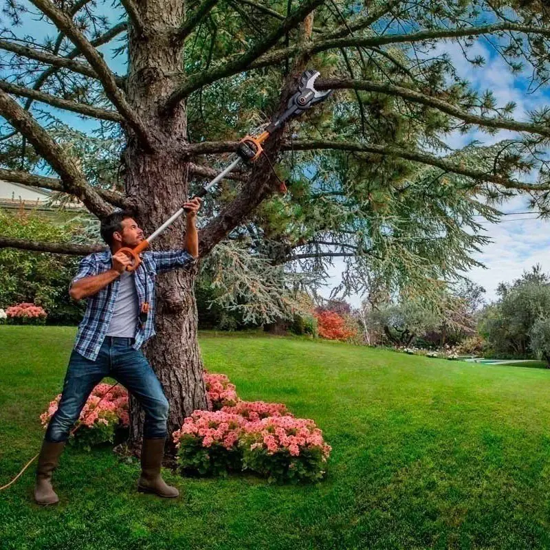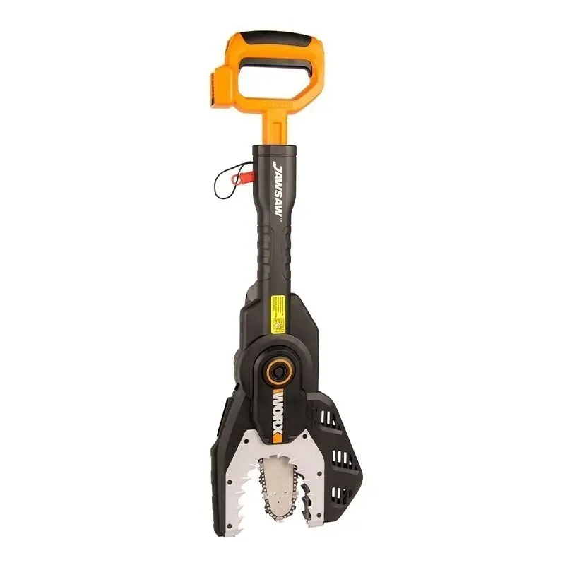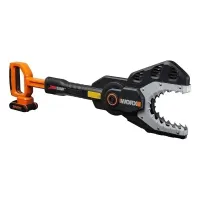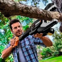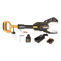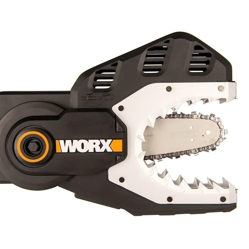 WORX JawSaw WG329E.9 – это безопасная аккумуляторная цепная пила работает от двух аккумуляторных батарей 20V. Шина длиной 15 см с цепью полностью убираются внутрь изделия, закрываются защитным кожухом, предохраняя пользователей от опасного контакта и делают ее самой безопасной из имеющихся пил.