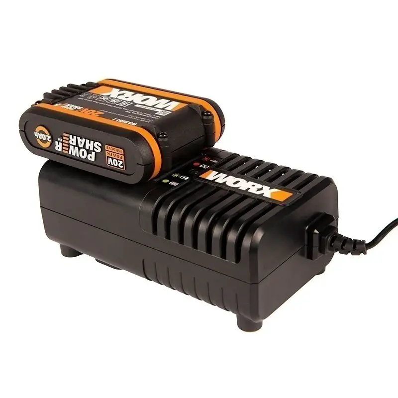 Уникальная система аккумуляторов PowerShare позволяется работать любым инструментам WORX на одном типе аккумулятора 20V, в не зависимости от вольтажа устройства.